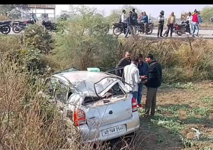 सपा नेता की कार अनियंत्रित होकर सड़क किनारे खाई गिरी