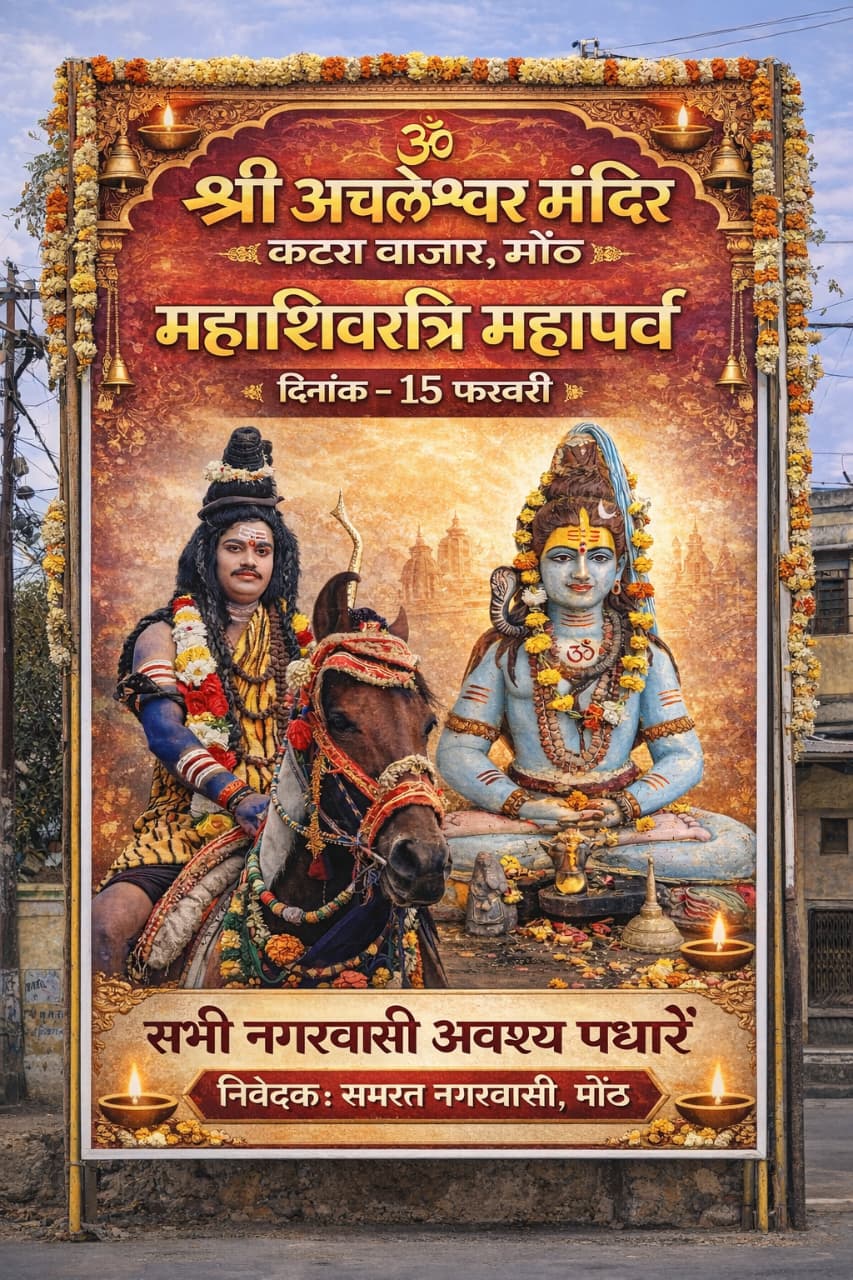 कल निकाली जाएगी मोंठ में भव्य शिव बारात, सभी नगर एवं क्षेत्रवासी शिव बारात में शामिल होंगे।