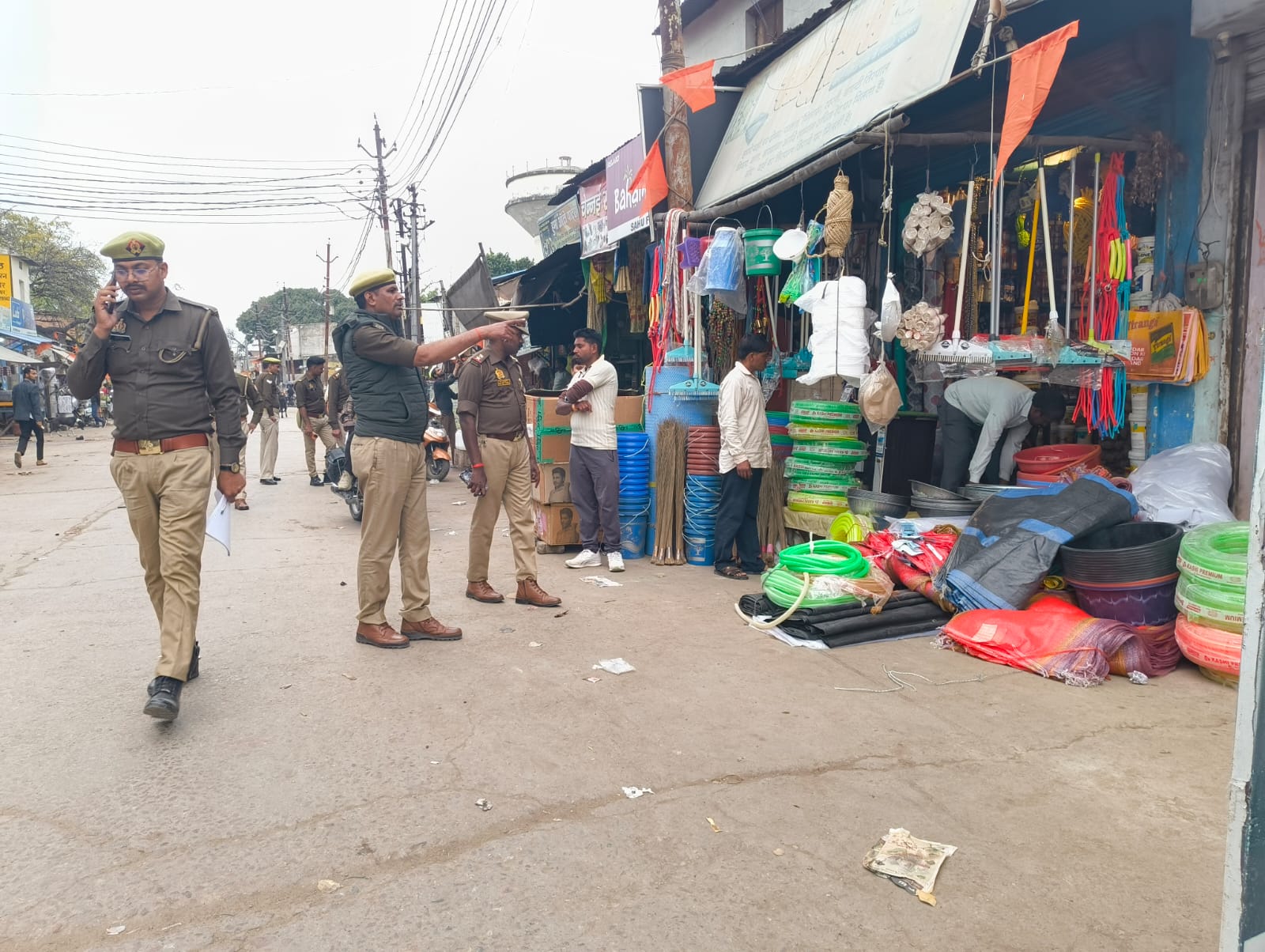 समथर पुलिस ने अतिक्रमण के खिलाफ चलाया अभियान।
