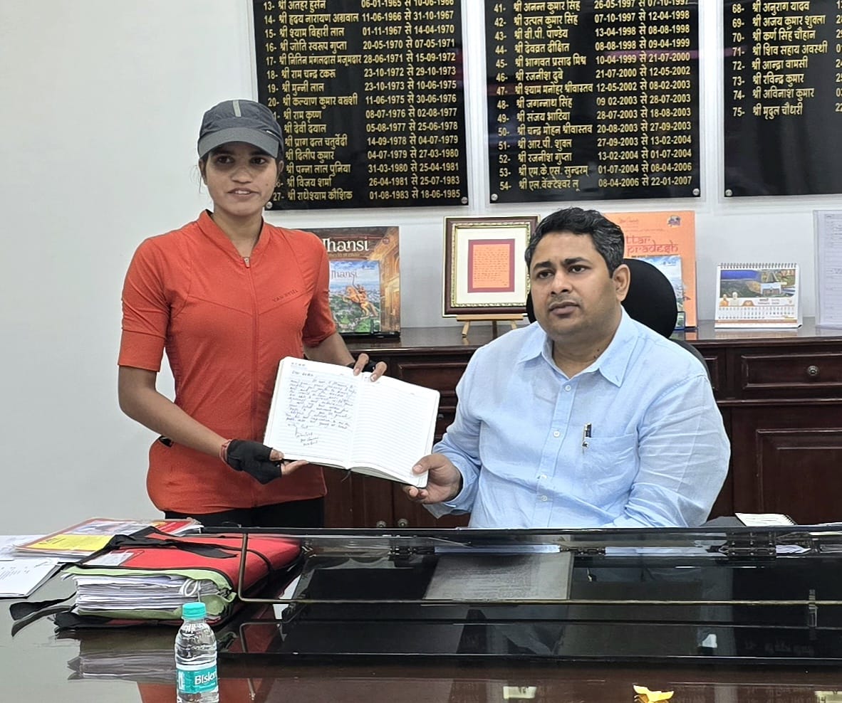 नारी शक्ति का संदेश लेकर 7800 किमी साइकिल यात्रा पर निकली आशा मालवीय झांसी पहुंचीं, डीएम ने किया स्वागत