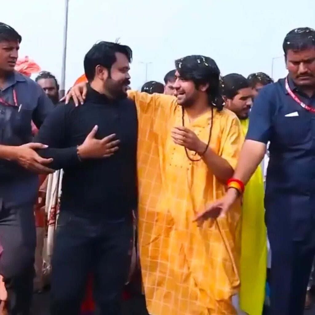 मथुरा। मथुरा में आयोजित हिंदू सनातन पदयात्रा में मोंठ के युवक शीतल सविता को बागेश्वर धाम के पीठाधीश्वर पंडित धीरेन्द्र कृष्ण शास्त्री का विशेष आशीर्वाद प्राप्त हुआ। कार्यक्रम के दौरान भारी संख्या में जुटे श्रद्धालुओं के बीच शीतल सविता जब पदयात्रा के समीप पहुँचे, तो शास्त्री जी ने उन्हें स्नेहपूर्वक अपने पास बुलाया। उन्होंने शीतल को हृदय से लगाकर आशीर्वाद दिया और उनकी मूंछों को ऐंठकर उत्साहवर्धन किया।