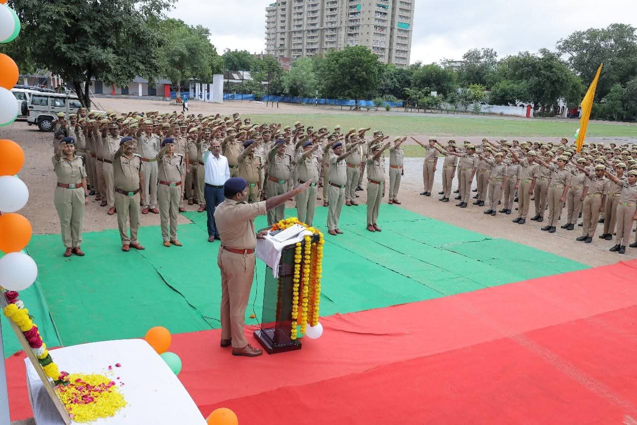 राष्ट्रीय एकता दिवस पर शपथ समारोह आयोजित झांसी: राष्ट्रीय एकता दिवस के अवसर पर पुलिस लाइन झाँसी में भव्य शपथ ग्रहण समारोह का आयोजन किया गया। इस अवसर पर वरिष्ठ पुलिस अधीक्षक, झाँसी बी.बी.जी.टी.एस मूर्ति द्वारा पुलिस अधिकारियों एवं कर्मचारियों को राष्ट्रीय एकता एवं अखंडता बनाए रखने की शपथ दिलाई गई। वरिष्ठ पुलिस अधीक्षक झाँसी